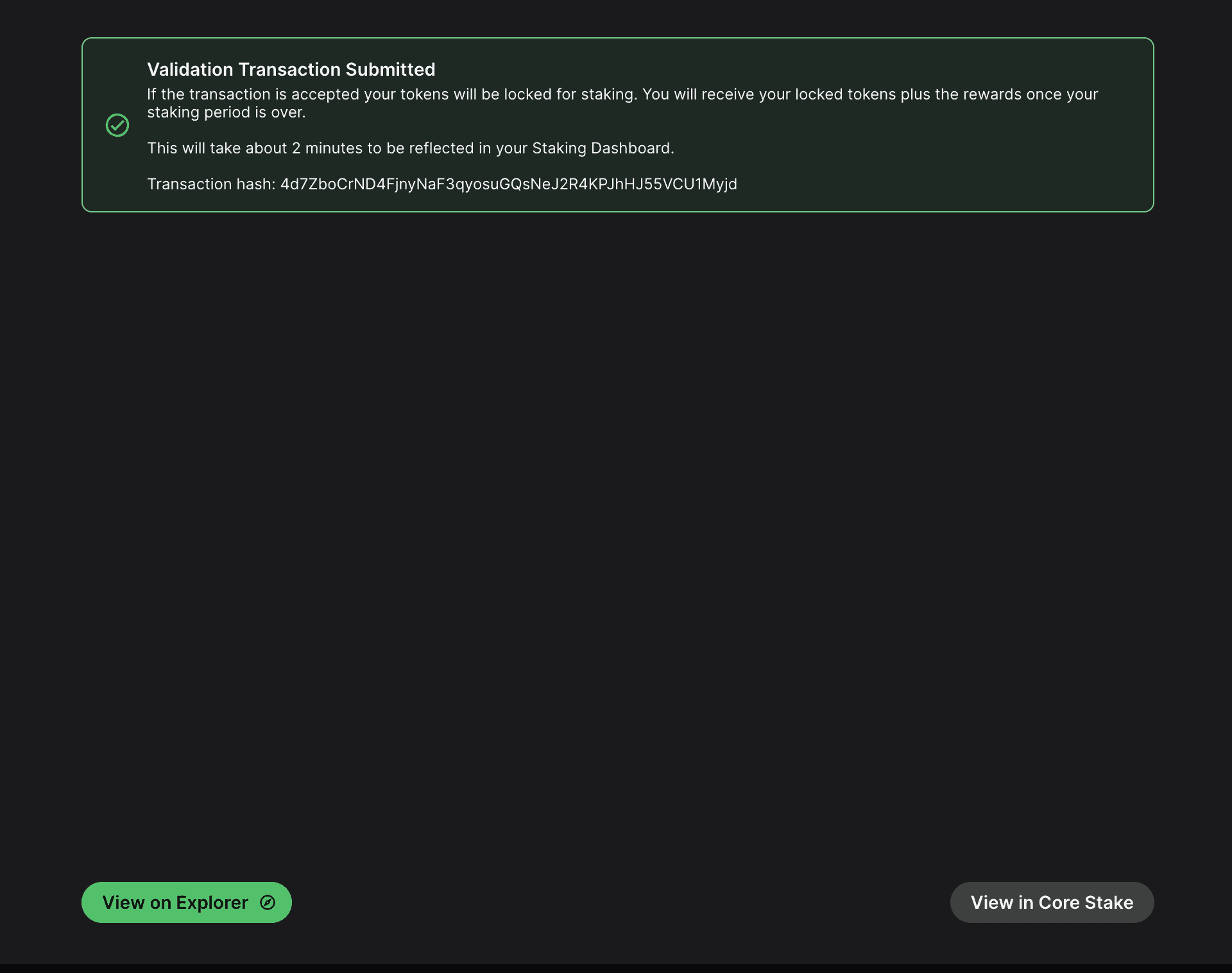 After the transaction is approved, you will see a message saying that your validation transaction was submitted.